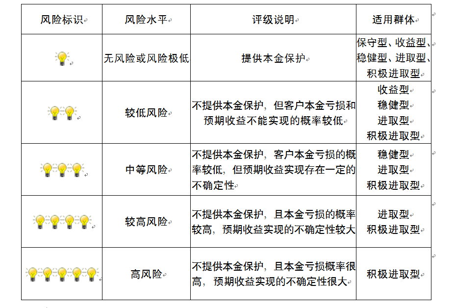 本产品为非保本浮动收益型理财产品,不保证本金和收益,请您充分认识投资风险,谨慎投资。本期产品期限为58天(中国建设银行有权对产品进行展期或提前终止),存续期内,产品不接受申购或赎回申请。本期产品内部风险评级级别为盏警示灯,风险水平属于中等风险。最不利情况下,您将损失全部收益甚至包括全部本金。本理财产品适用于稳健型进取型 积极进取型客户。