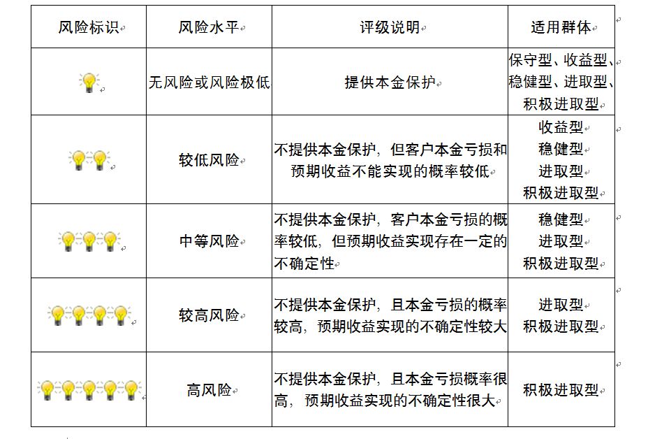 ,风险水平属于中等风险。最不利情况下,您将损失全部收益甚至包括全部本金。本理财产品适用于稳健型、进取型 、积极进取型客户。