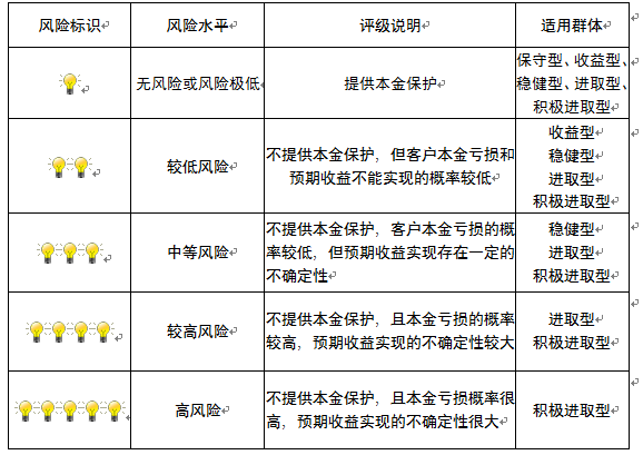 本产品为非保本浮动收益型理财产品,不保证本金和收益,请您充分认识投资风险,谨慎投资。本期产品期限为90天(中国建设银行有权对产品进行展期或提前终止),存续期内,产品不接受申购或赎回申请。本期产品内部风险评级级别为盏警示灯,风险水平属于中等风险。最不利情况下,您将损失全部收益甚至包括全部本金。本理财产品适用于稳健型进取型 积极进取型客户。