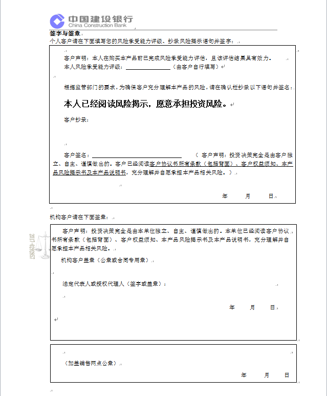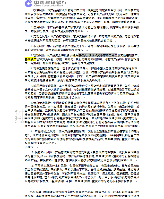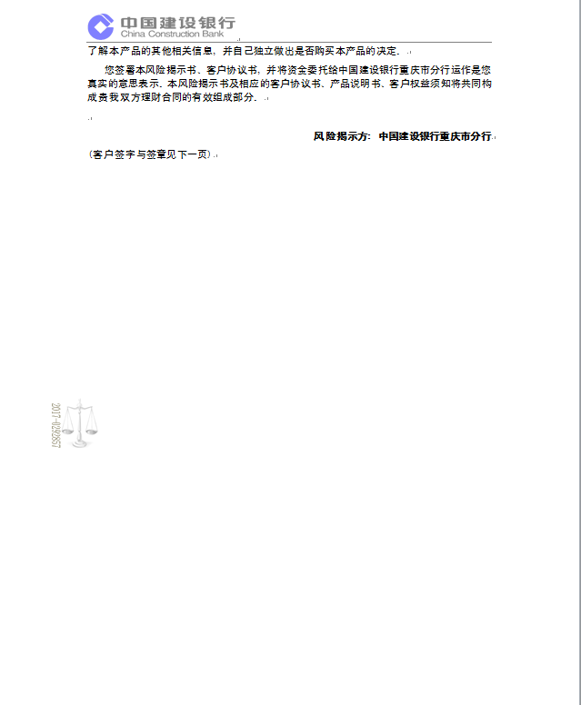 中国建设银行重庆市分行“乾元-鑫鑫向荣” 2017年第410期理财产品说明书和风险揭示书