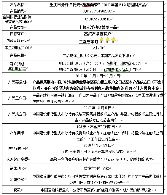 3.中国建设银行重庆市分行可根据市场情况等调整产品规模上、下限,并最迟于调整规模上下限当日进行公告。
