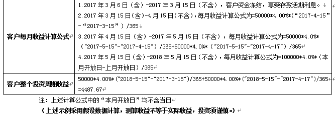 假设客户投资本金5万元,实际参与理财的天数20天,实际年化收益率4.00%。