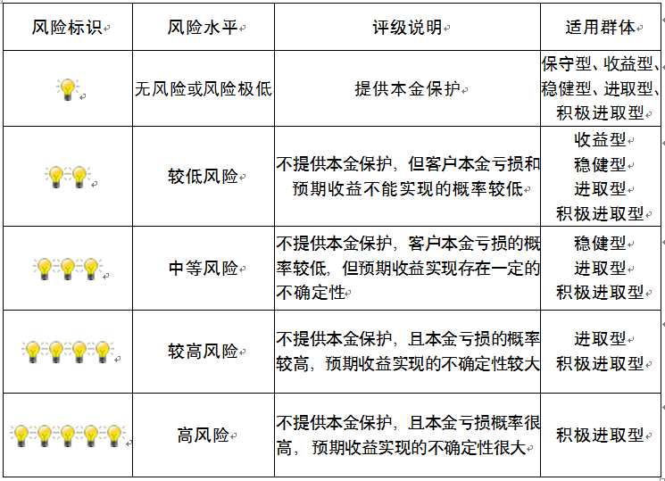 ,风险水平属于中等风险。最不利情况下,您将损失全部收益甚至包括全部本金。本理财产品适用于稳健型、进取型 、积极进取型客户。