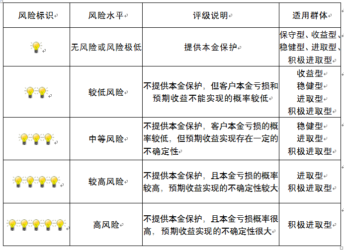 ,风险水平属于较低风险。最不利情况下,您将损失全部收益甚至包括全部本金。本理财产品适用于收益型、稳健型、进取型 、积极进取型客户。