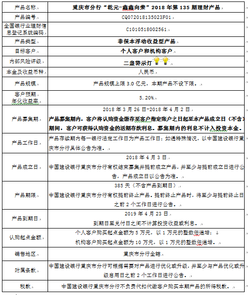 2018年第135期理财产品说明书