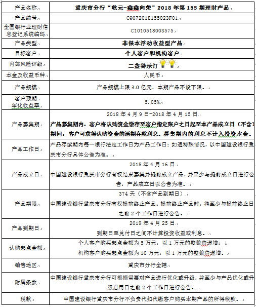 3.中国建设银行重庆市分行可根据市场情况等调整产品规模上、下限,并最迟于调整规模上下限当日进行公告。