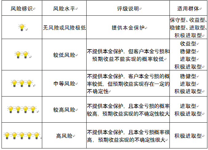 ,风险水平属于中等风险。最不利情况下,您将损失全部收益甚至包括全部本金。本理财产品适用于稳健型、进取型 、积极进取型客户。