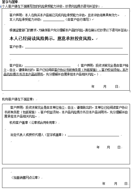 您签署本风险揭示书、客户协议书,并将资金委托给中国建设银行重庆市分行运作是您真实的意思表示。本风险揭示书及相应的客户协议书、产品说明书、客户权益须知将共同构成贵我双方理财合同的有效组成部分。