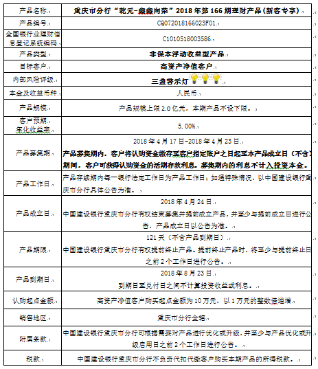 中国建设银行重庆市分行“乾元-鑫鑫向荣” 2018年第166期理财产品风险揭示书和说明书