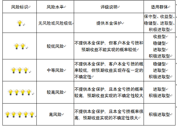 ,风险水平属于中等风险。最不利情况下,您将损失全部收益甚至包括全部本金。本理财产品适用于稳健型、进取型 、积极进取型客户。