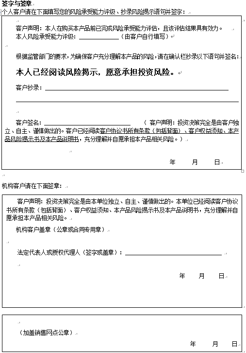 您签署本风险揭示书、客户协议书,并将资金委托给中国建设银行重庆市分行运作是您真实的意思表示。本风险揭示书及相应的客户协议书、产品说明书、客户权益须知将共同构成贵我双方理财合同的有效组成部分。
