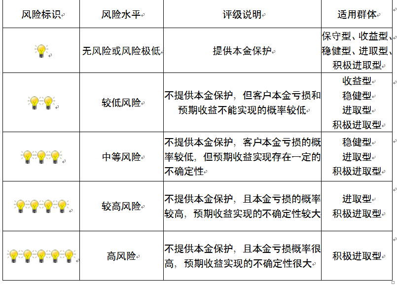 ,风险水平属于中等风险。最不利情况下,您将损失全部收益甚至包括全部本金。本理财产品适用于稳健型、进取型 、积极进取型客户。