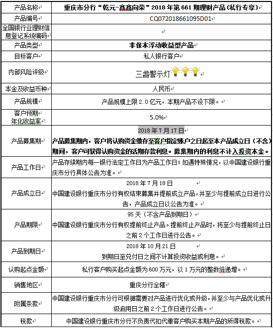 3.中国建设银行重庆市分行可根据市场情况等调整产品规模上、下限,并最迟于调整规模上下限当日进行公告。