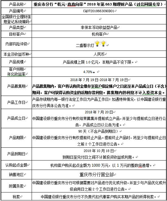 中国建设银行重庆市分行“乾元-鑫鑫向荣” 2018年第663期理财产品风险揭示书和产品说明书