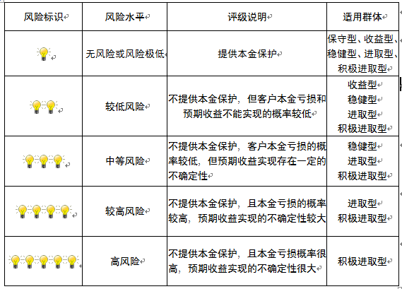 本产品为非保本浮动收益型理财产品,不保证本金和收益,请您充分认识投资风险,谨慎投资。本期产品期限为180天(中国建设银行有权对产品进行展期或提前终止),存续期内,产品不接受申购或赎回申请。本期产品内部风险评级级别为二盏警示灯,风险水平属于较低风险。最不利情况下,您将损失全部收益甚至包括全部本金。本理财产品适用于收益型、稳健型、进取型 、积极进取型客户。
