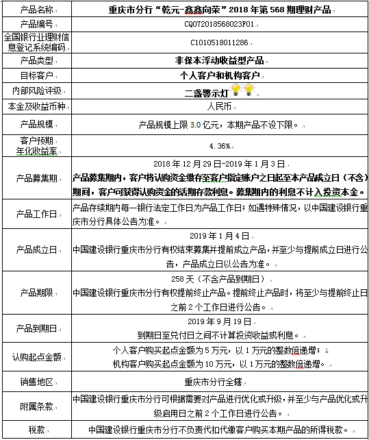 3.中国建设银行重庆市分行可根据市场情况等调整产品规模上、下限,并最迟于调整规模上下限当日进行公告。