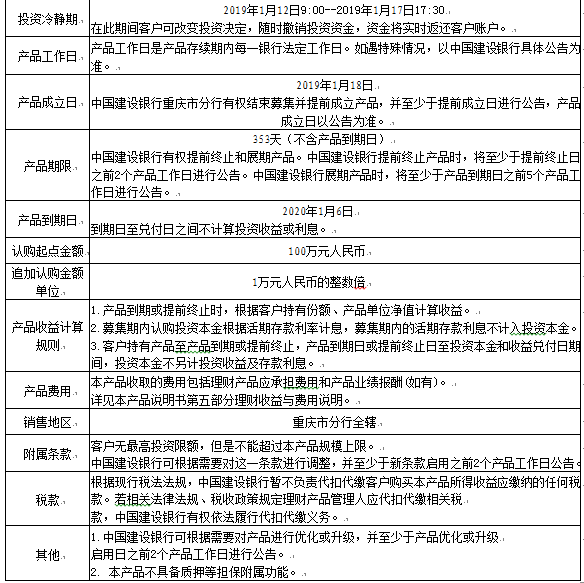 1.如遇国家金融政策出现重大调整并影响到本产品的正常运作时,中国建设银行有权利但无义务提前终止本产品。