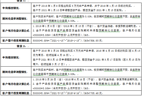 假设客户投资本金5万元,实际参与理财的天数20天,实际年化收益率5.00%。