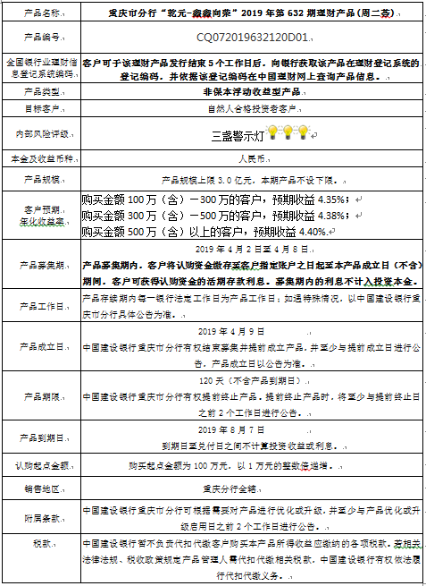 3.中国建设银行重庆市分行可根据市场情况等调整产品规模上、下限,并最迟于调整规模上下限当日进行公告。