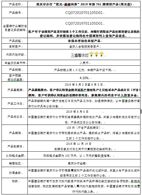 3.中国建设银行重庆市分行可根据市场情况等调整产品规模上、下限,并最迟于调整规模上下限当日进行公告。