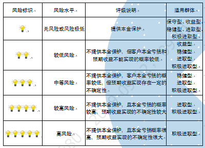 本产品为非保本浮动收益型理财产品,不保证本金和收益,请您充分认识投资风险,谨慎投资。本期产品期限为317天(中国建设银行有权对产品进行展期或提前终止),存续期内,产品不接受申购或赎回申请。本期产品内部风险评级级别为三盏警示灯 ,风险水平属于中等风险。最不利情况下,您将损失全部收益甚至包括全部本金。本理财产品适用于稳健型、进取型 、积极进取型客户。