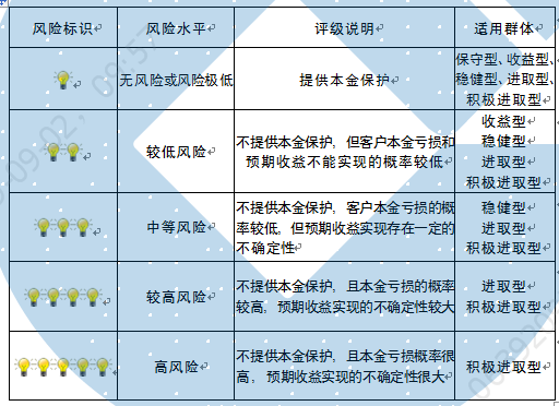 本产品为非保本浮动收益型理财产品,不保证本金和收益,请您充分认识投资风险,谨慎投资。本期产品期限为363天(中国建设银行有权对产品进行展期或提前终止),存续期内,产品不接受申购或赎回申请。本期产品内部风险评级级别为盏警示灯 ,风险水平属于较低风险。最不利情况下,您将损失全部收益甚至包括全部本金。本理财产品适用于收益型、稳健型、进取型 积极进取型客户。