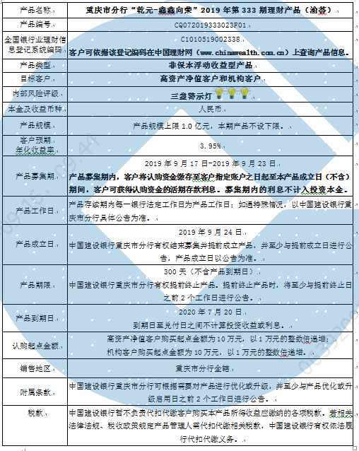 3.中国建设银行重庆市分行可根据市场情况等调整产品规模上、下限,并最迟于调整规模上下限当日进行公告。