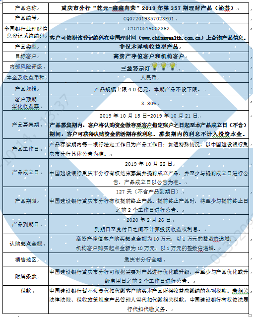 2019年第357期理财产品说明书