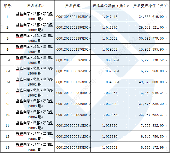 经理财产品托管人核准,截至2019年9月30日,中国建设银行“乾元-鑫鑫向荣” (私募)封闭式净值型人民币理财产品净值如下: