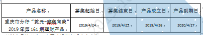 “乾元—鑫鑫向荣” 2019年第161期理财产品于2019年4月26日正式成立。截至报告日,本产品规模为4489万元,杠杆水平符合监管要求。