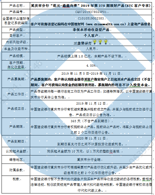 2019年第378期理财产品说明书