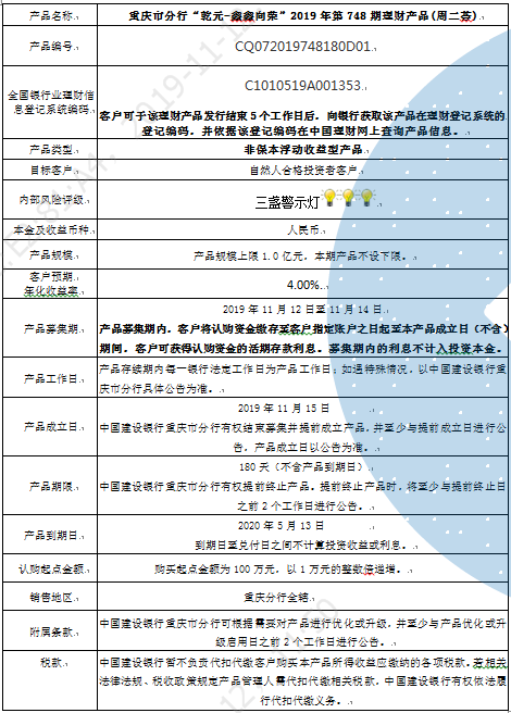 3.中国建设银行重庆市分行可根据市场情况等调整产品规模上、下限,并最迟于调整规模上下限当日进行公告。