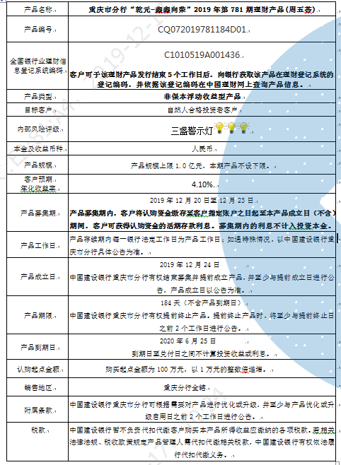 2019年第781期理财产品说明书