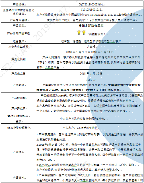 3.中国建设银行重庆市分行可根据市场和产品运行情况等调整产品存续期规模上下限,并至少于调整规模上下限之日之前进行公告。