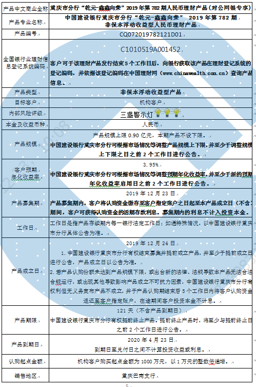 1.中国建设银行重庆市分行通过中国建设银行网站(www.ccb.com)披露产品以下相关信息,包括产品成立信息,产品存续期信息,产品终止信息等。