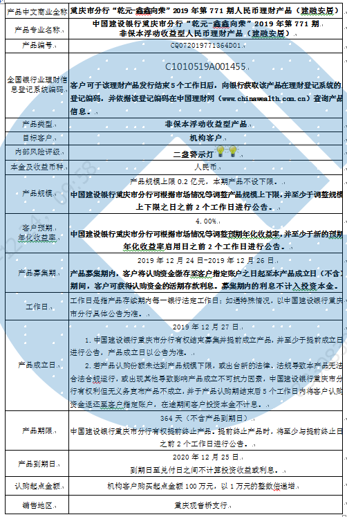 1.中国建设银行重庆市分行通过中国建设银行网站(www.ccb.com)披露产品以下相关信息,包括产品成立信息,产品存续期信息,产品终止信息等。