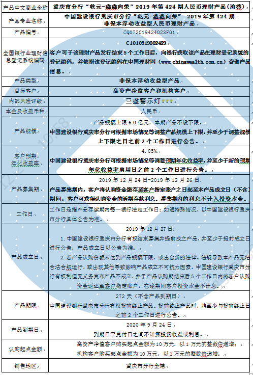 1.中国建设银行重庆市分行通过中国建设银行网站(www.ccb.com)披露产品以下相关信息,包括产品成立信息,产品存续期信息,产品终止信息等。